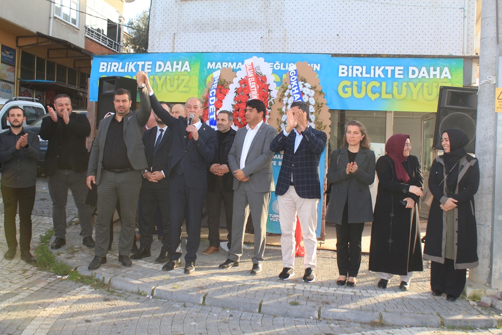 Ak Parti ilçe başkanı  Muhammet  Gökmen  Milliyetçi Hareket Partisi İlçe Başkan Mehmet Kaya’nın yanısıra vatandaşların ve partililerin yoğun ilgisi karşısında konuşan Marmara Ereğlisi Belediye Başkanı Hikmet Ata “Bir 5 yıl daha eksik hizmetlerimiz tamamlamak için tekrar aday olduk.