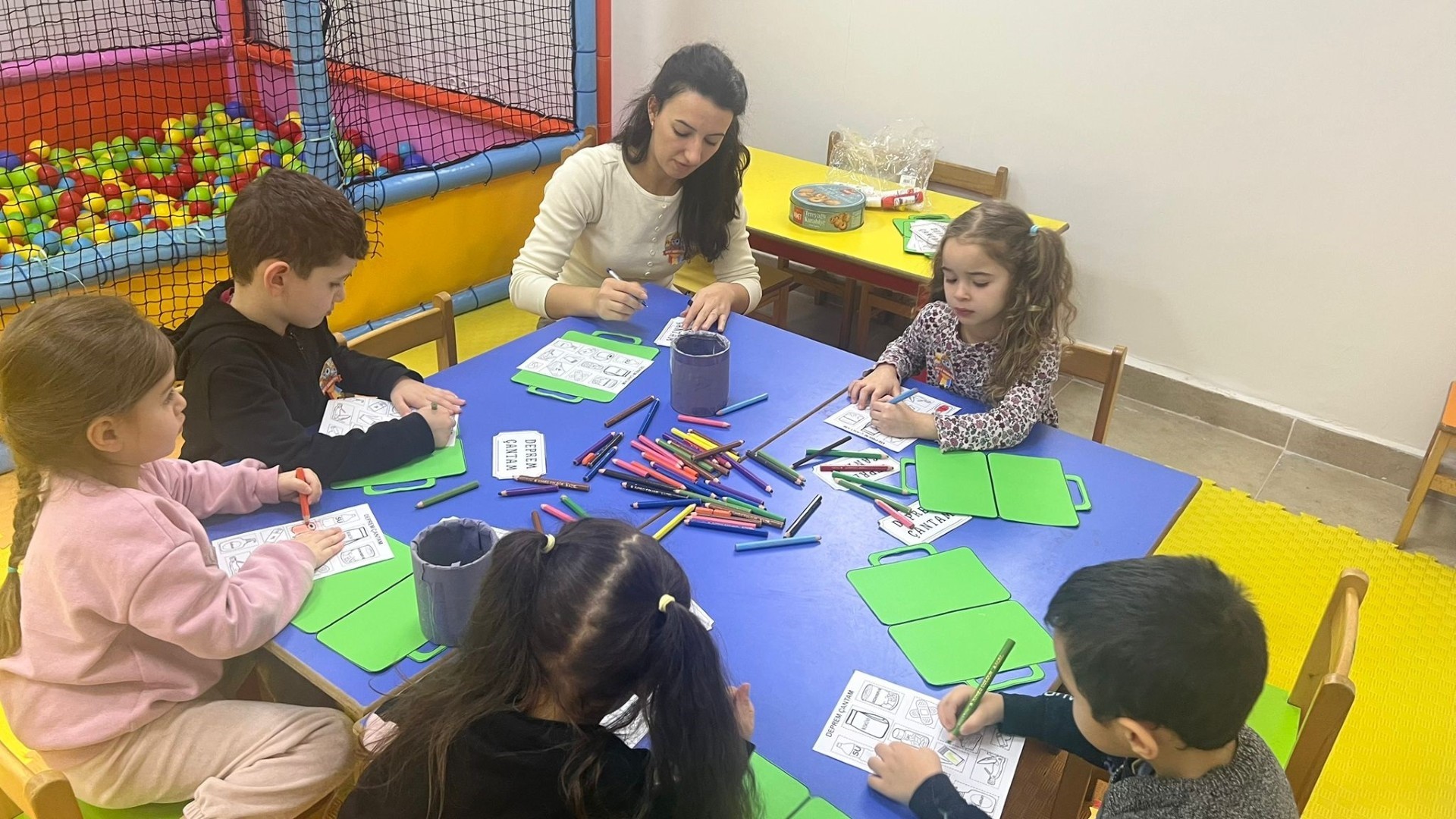 ANNELER DERSTE, ÇOCUKLAR ATÖLYEDE