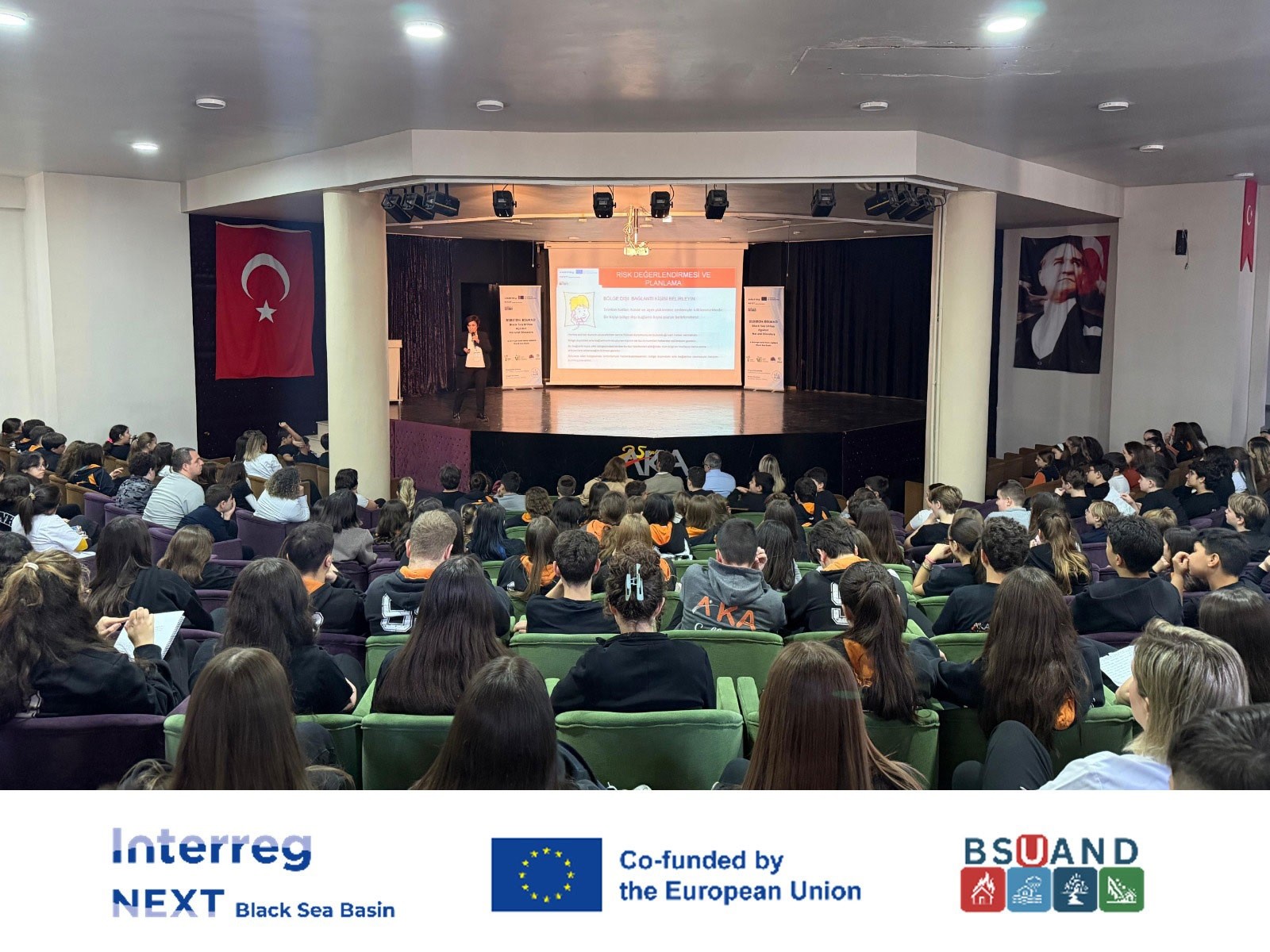 Interreg NEXT Karadeniz Havzasında Sınır Ötesi İşbirliği Programı destekli “Black Sea Unites Against Natural Disasters (BSUAND)” başlıklı proje kapsamında gerçekleştirilen afet farkındalık eğitimlerinin sonuncusu Aka Koleji’nde gerçekleştirildi.