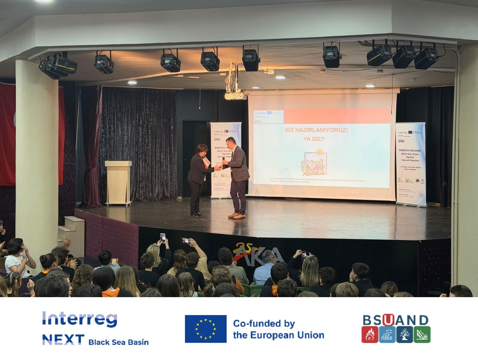 Interreg NEXT Karadeniz Havzasında Sınır Ötesi İşbirliği Programı destekli “Black Sea Unites Against Natural Disasters (BSUAND)” başlıklı proje kapsamında gerçekleştirilen afet farkındalık eğitimlerinin sonuncusu Aka Koleji’nde gerçekleştirildi.
