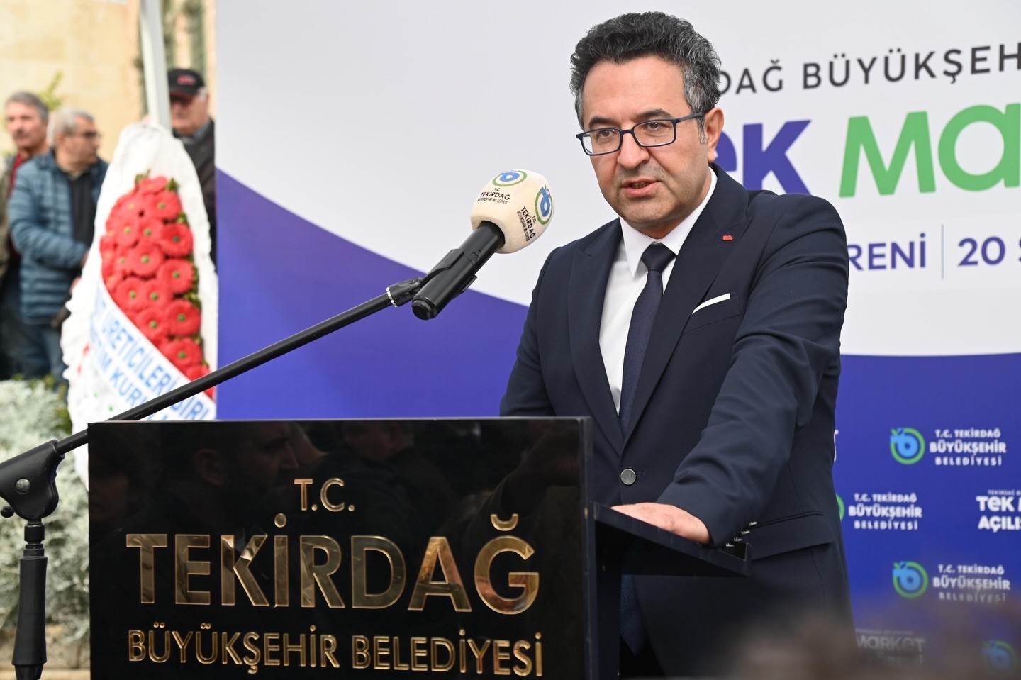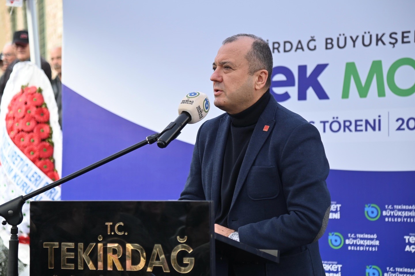 Ekonomik zorluklara karşı sosyal belediyecilik vizyonuyla projelerini ardı ardına hayata geçiren Tekirdağ Büyükşehir Belediyesi, yerel kalkınma hamlesine bir yenisini daha ekledi. Üretici kooperatifleri ile dar gelirli vatandaş arasında köprü kuran TEK Market’in ilk şubesi, Süleymanpaşa ilçesi Ertuğrul Mahallesi Hasan Âli Yücel Meydanı’nda düzenlenen coşkulu bir törenle açıldı.