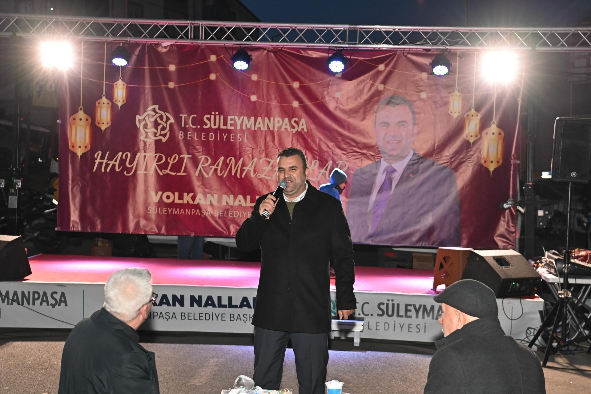 Süleymanpaşa Belediyesi’nin gelenekselleşen “Halk Sofraları” buluşmaları, Ortacami Mahallesi’nde kurulan dev iftar sofrasıyla başladı. Yoğun katılımın olduğu gecede vatandaşlarla bir araya gelen Belediye Başkanı Volkan Nallar, mahalle sakinleriyle aynı sofrada iftar yaptı.