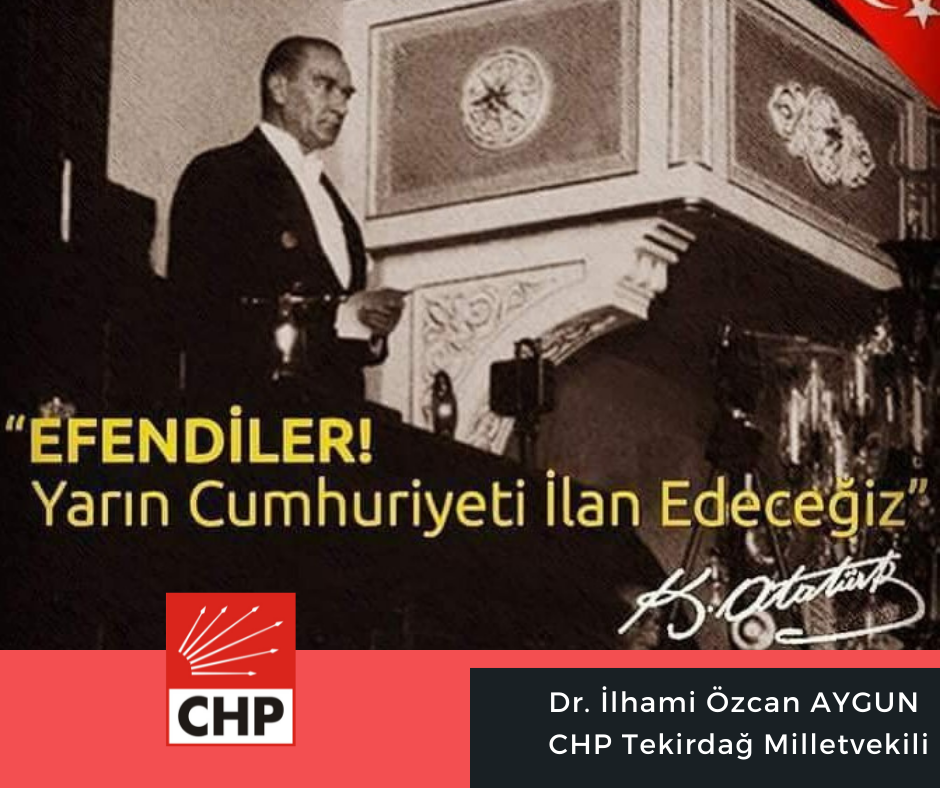 “Egemenlik kayıtsız şartsız milletindir” esası ile kurulan Cumhuriyet, Türk milletinin yeniden ayağa kalktığı, kadınların her alanda eşit haklar edindiği, din ve vicdan özgürlüğünün “laiklik” ile teminat altına alındığı, Tevhid-i Tedrisat ile eğitimde çok başlılığın giderildiği, Anadolu’nun en ücra köşelerine kadar götürülen okuma-yazma ve eğitim seferberliği ile halkın uyandırıldığı topyekûn bir değişimin adıdır.