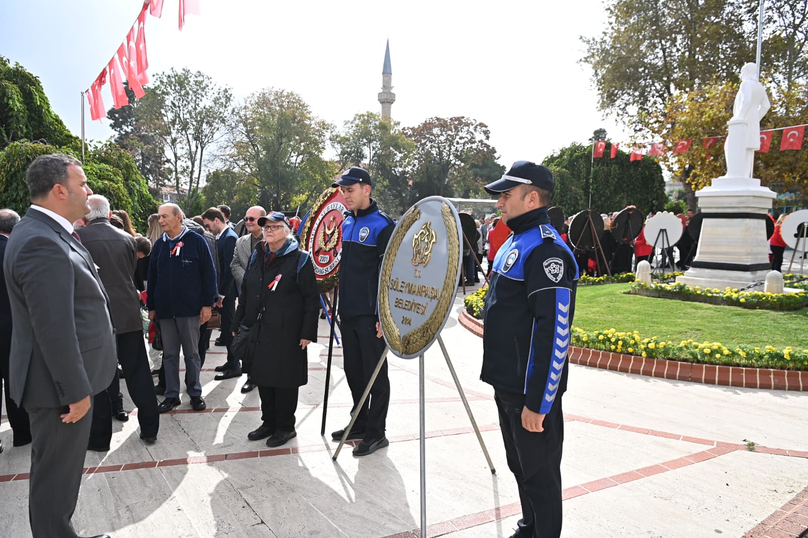 Süleymanpaşa Belediye Başkanı Volkan Nallar, ilk olarak Tekirdağ Valiliği tarafından düzenlenen çelenk sunma törenine katılarak Gazi Mustafa Kemal Atatürk ve silah arkadaşları huzurunda saygı duruşunda bulundu. Nallar, belediye çelengini Ata’nın huzuruna sunarak Ulu Önderi selamladı.