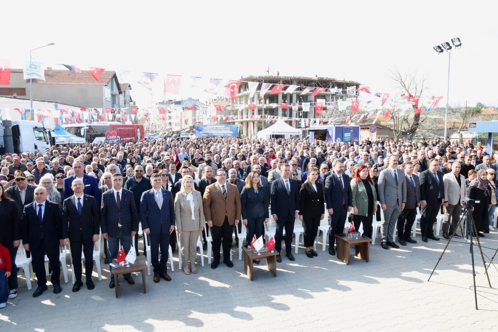 Yeniçiftlik Mahallesi’nde gerçekleştirilen temel atma törenine ilçe belediye başkanları, kurum ve kuruluş temsilcileri, meclis üyeleri, sivil toplum kuruluşları ve siyasi parti temsilcileri ile çok sayıda vatandaş katıldı.