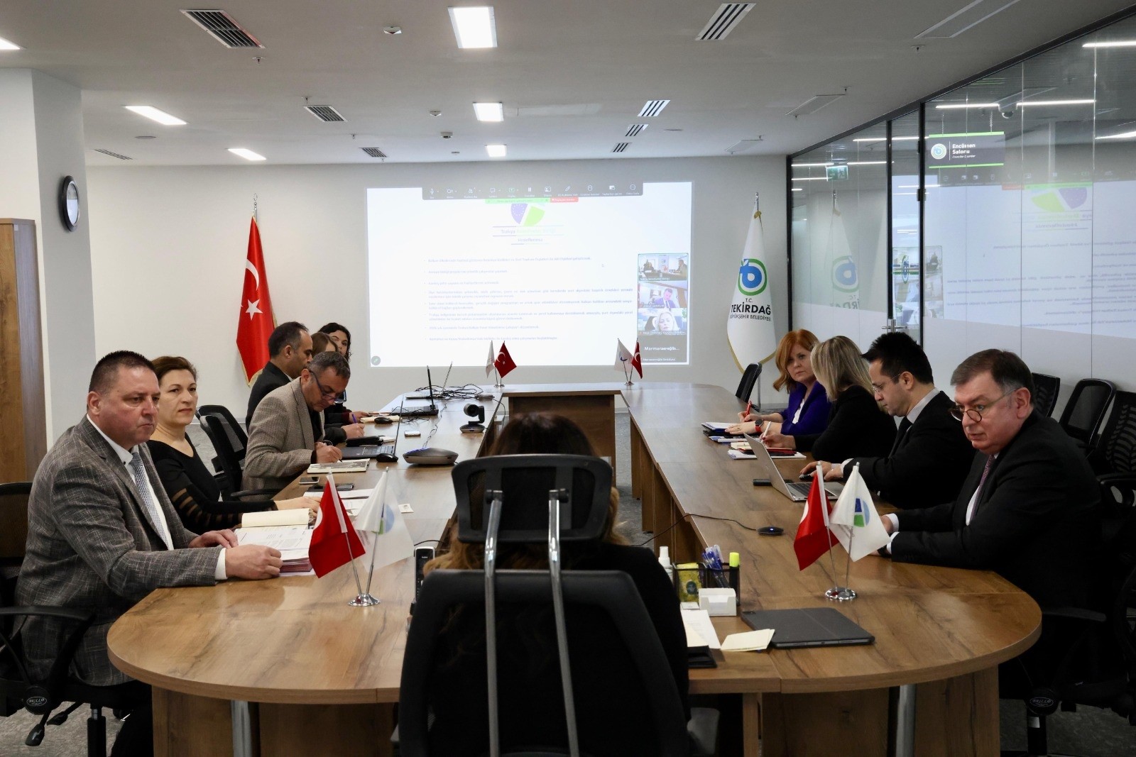 Trakya Belediyeler Birliği Şubat Ayı Olağan Encümen Toplantısı, Tekirdağ Büyükşehir Belediyesi Ana Hizmet Binası Encümen Toplantı Salonu’nda çevrim içi bağlantı ile gerçekleştirildi.