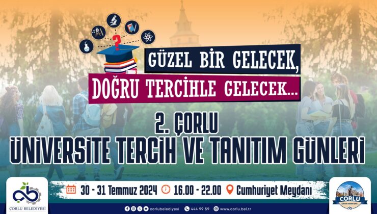 Üniversite öğrencilerinin doğru tercihlerle eğitim hayatlarını sürdürebilmeleri için hayata geçirilen öğrenci dostu Çorlu Tercih ve Tanıtım Günleri projesi, 30-31 Temmuz 2024 tarihlerinde Cumhuriyet Meydanı’nda düzenlenecek.