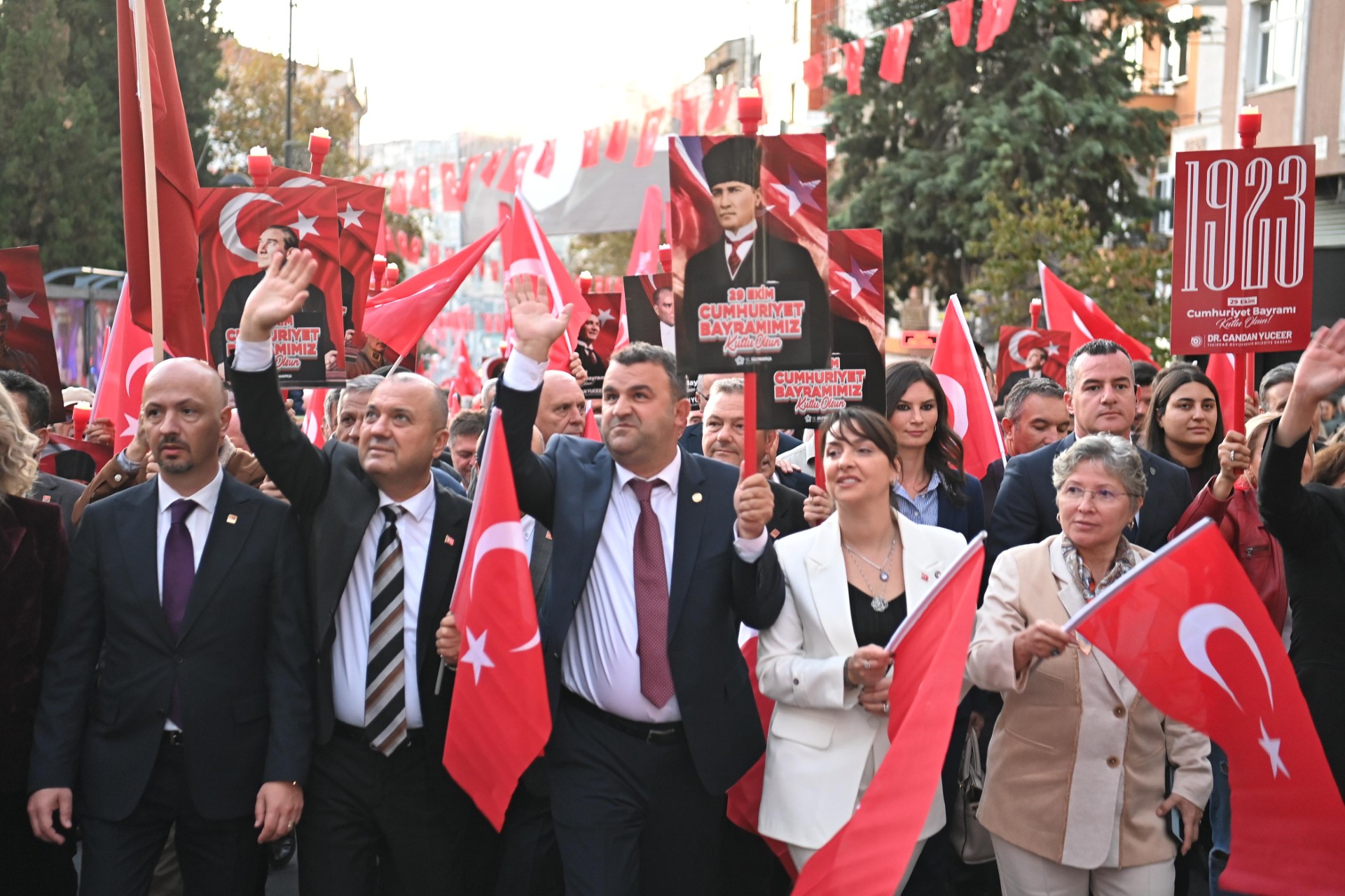 Köprübaşı Mevkii’nden başlayarak Hükümet Caddesi boyunca ilerleyen Cumhuriyet Korteji, marşlar, sloganlar ve yüksek bir katılım ile bayram ruhunu şehrin her noktasına ulaştırırken, Cumhuriyet sevincini zirveye taşıdı.