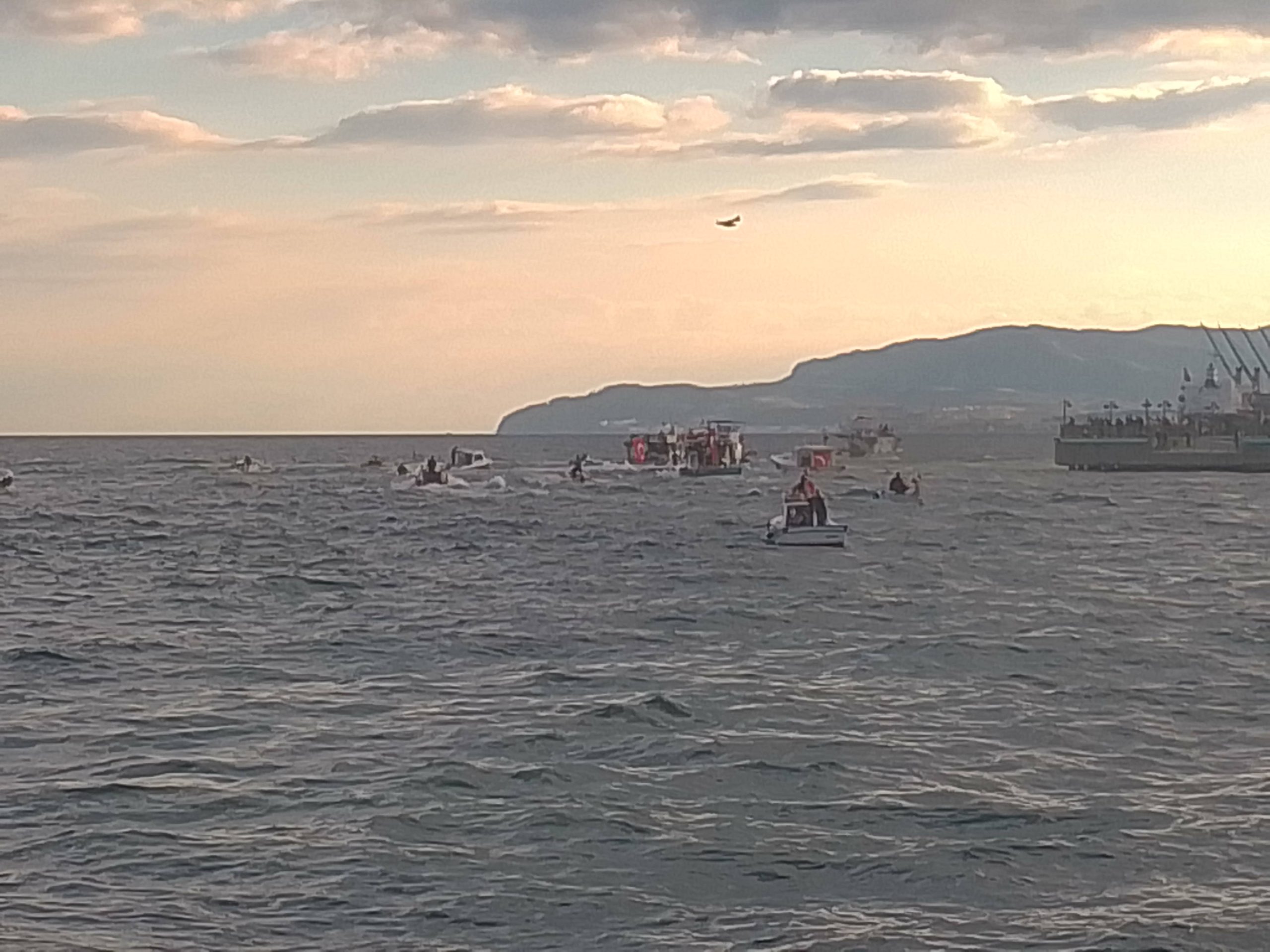 Tekirdağ Milletvekilleri Mestan Özcan Gökhan Diktaş Çiğdem Koncagül AK parti il Başkanı Av.Ali gümüş ilçe başkanları kadın kolları ve partilerin ve vatandaşların da destek verdiği programda yaklaşık 150 Tekirdağlı balıkçı da Sumud Filosu ve Filistine destek için denize açıldı.