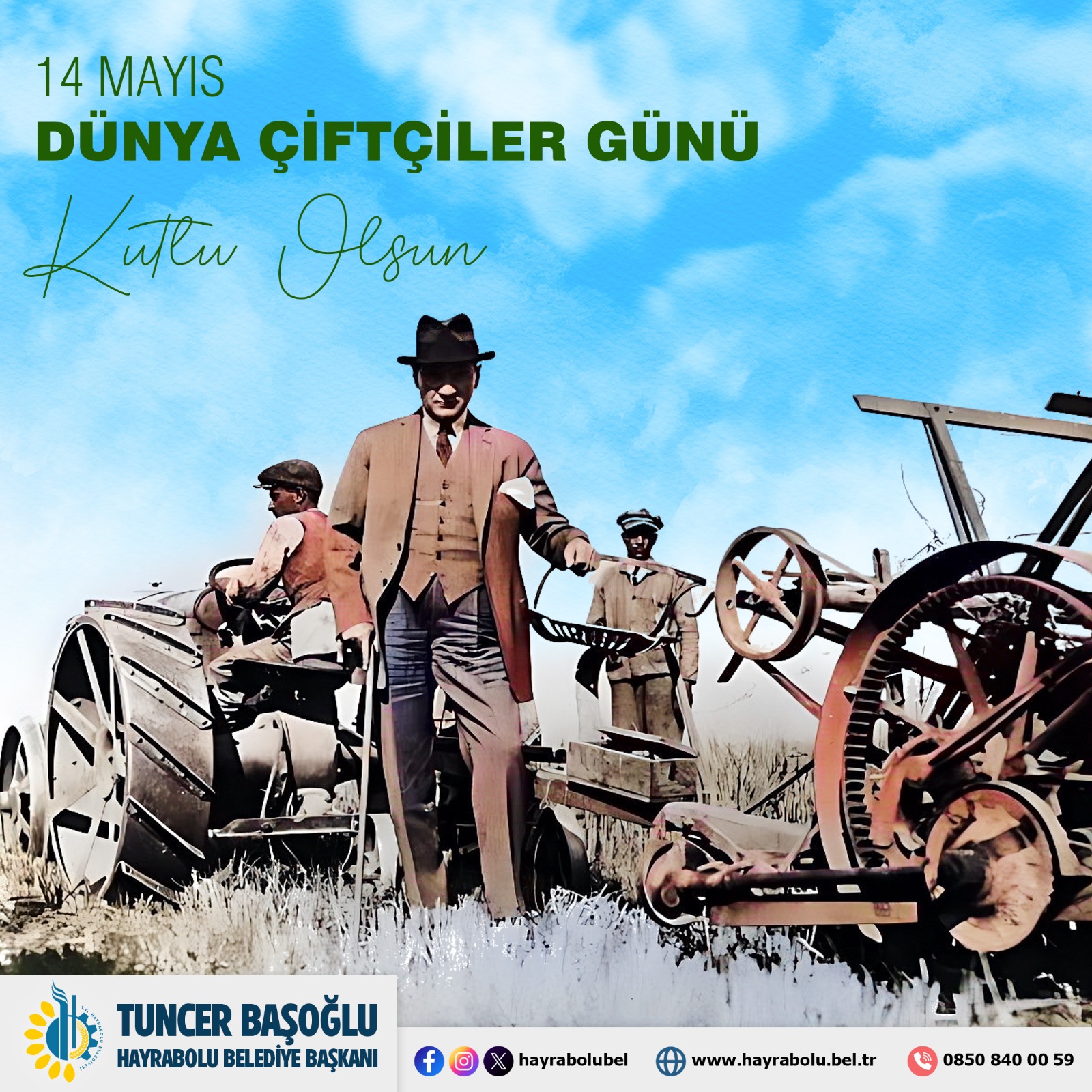 Bu duygu ve düşüncelerle geçimini topraktan sağlayan, toprağa emek veren ve topraktan elde ettiği ürünleri bizlere ulaştıran çiftçilerimizin 14 Mayıs Dünya Çiftçiler Günü’nü kutluyorum.