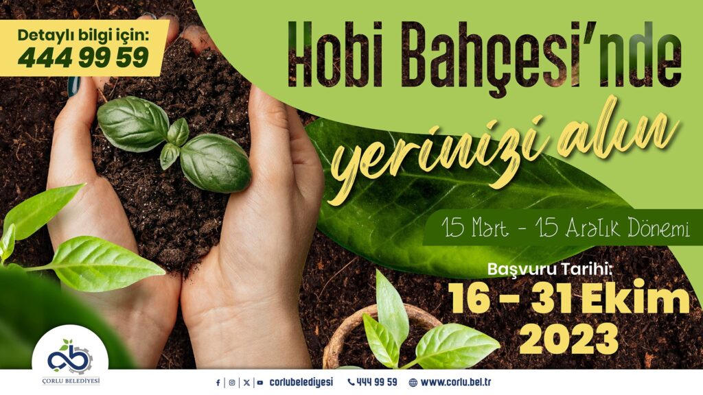 Vatandaşlarımızın üretime açılacak hobi bahçelerinden faydalanabilmek için 31 Ekim 2023 tarihine kadar Çorlu Belediyesi İşletme ve İştirakler Müdürlüğü’ne yazılı olarak müracaat etmeleri gerekiyor.