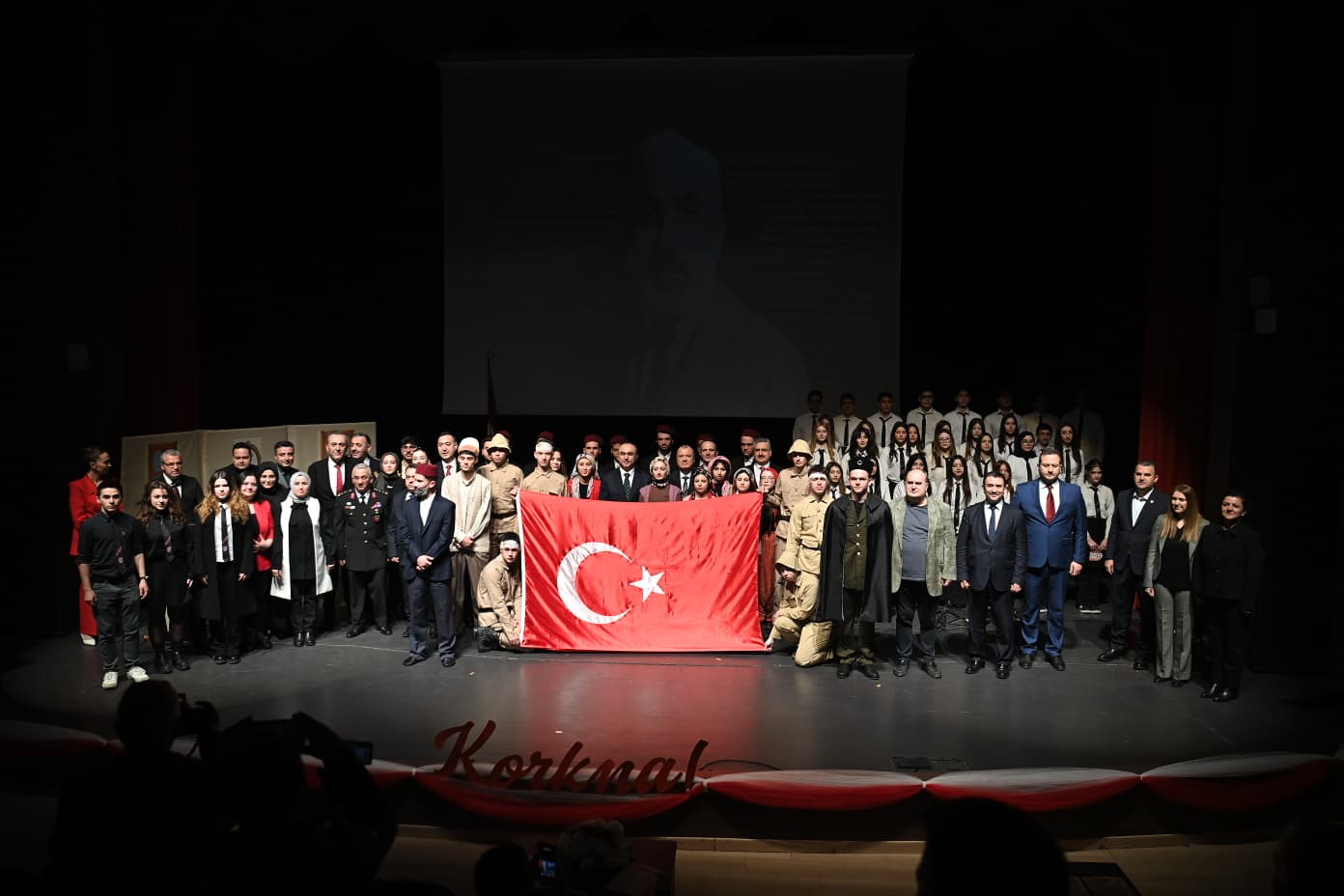 “KORKMA! GENÇLİĞİN RUHU BURADA” temasıyla gerçekleştirilen program, saygı duruşunda bulunulması ve İstiklal Marşımızın okunması ile başladı.
