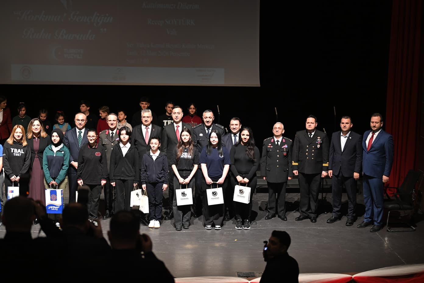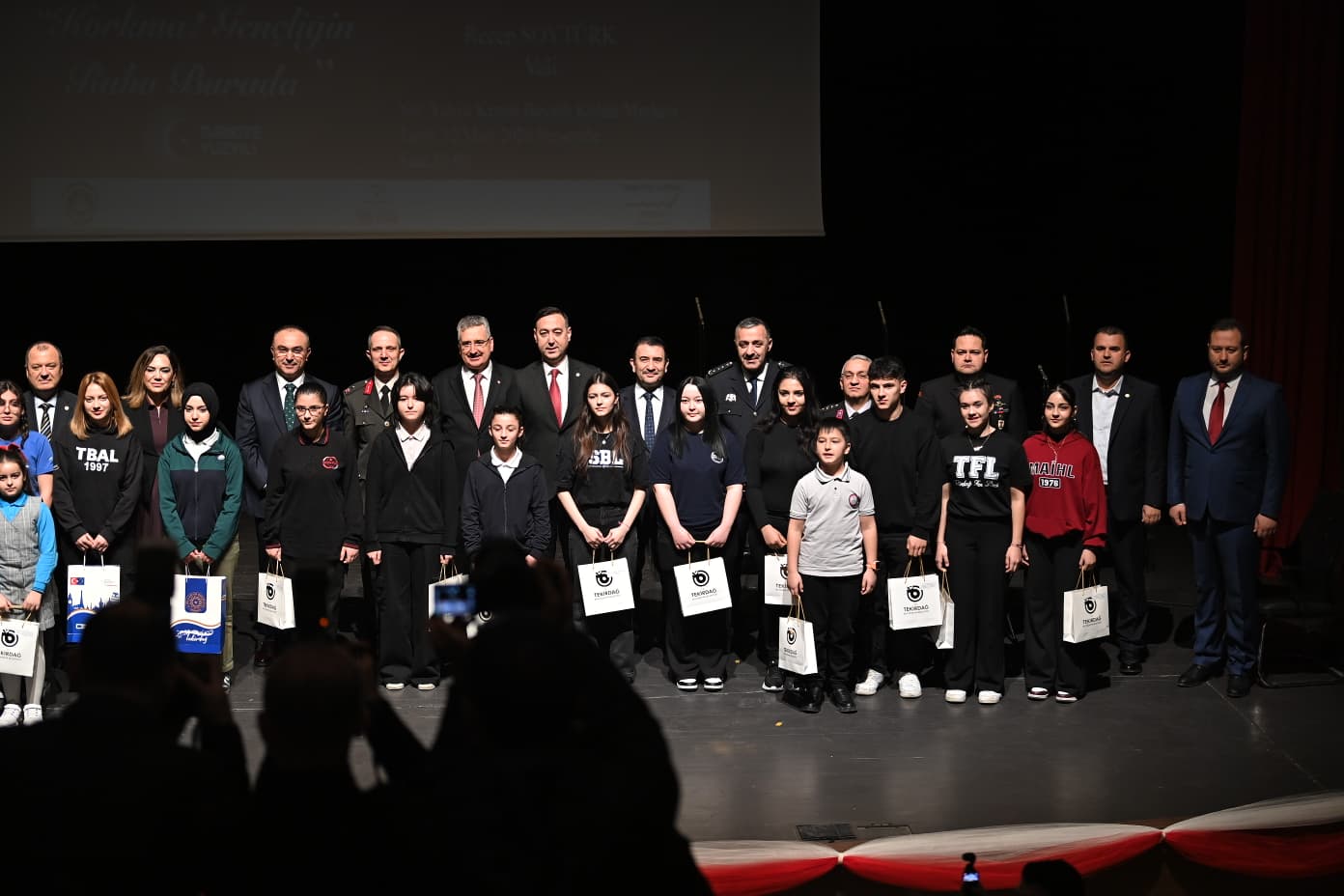 Programa Valimiz Sayın Recep Soytürk’ün yanı sıra Tekirdağ milletvekili İlhami Özcan Aygun, Garnizon Komutanı Tuğg. Aytuğ Yörüyüş, Tekirdağ Büyükşehir Belediye Başkanı Dr. Candan Yüceer, Tekirdağ Cumhuriyet Başsavcısı Erdal Şenol, Tekirdağ Namık Kemal Üniversitesi Rektörü Prof. Dr. Mümin Şahin, Baro Başkanı Av. Egemen Gürcün, Vali Yardımcısı Mustafa Çek, Süleymanpaşa Kaymakamı Mahmut Nedim Tunçer, İl Emniyet Müdürü Ahmet Metin Turanlı, İl Jandarma Komutanı J. Alb. Ali Güngör, Sahil Güvenlik Karakol Komutanı S.G. Yzb. Can Çakıcı, Süleymanpaşa Belediye Başkanı Volkan Nallar, kurum müdürleri, öğretmenler, öğrenciler ve vatandaşlar katıldı.