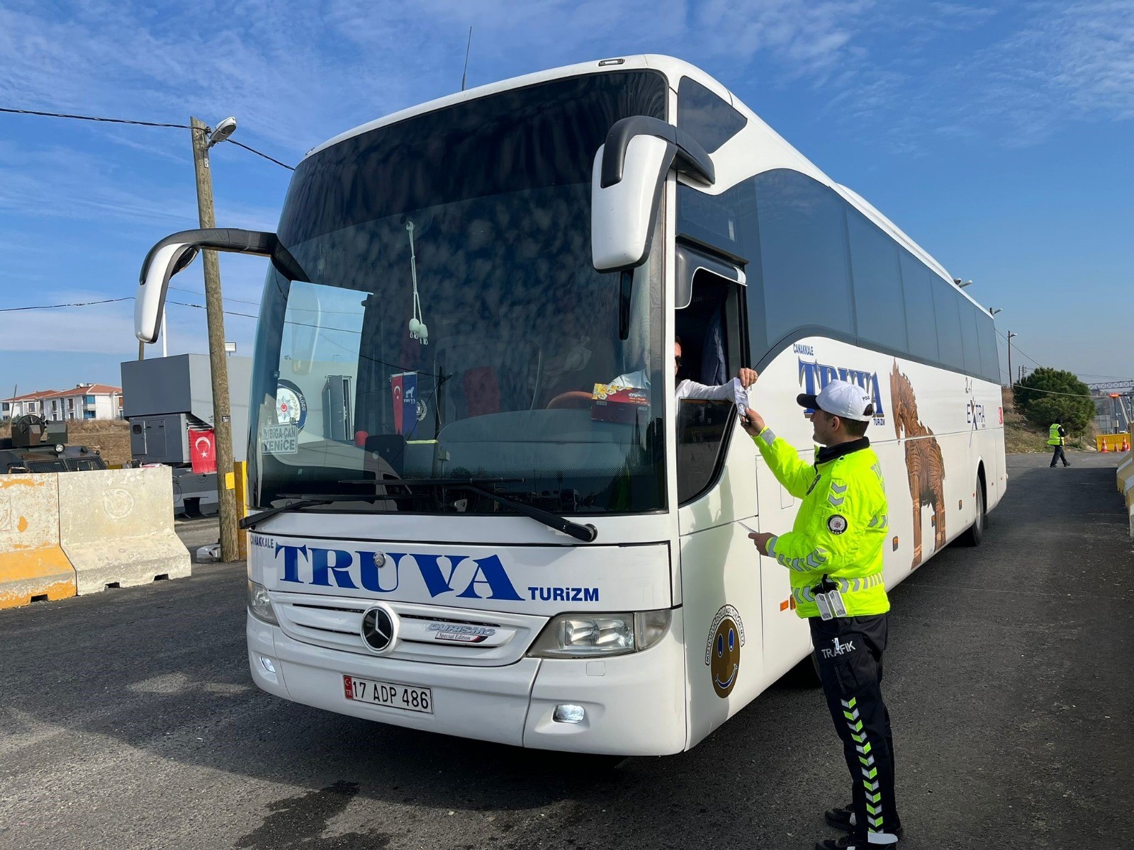 Trafik Ekiplerince yapılan denetimlerde ve şehirlerarası otobüs terminalinde sürücüleri bilgilendirmek amacıyla el broşürü dağıtımı yapılarak kış mevsiminde uyulması gereken sürüş kuralları hakkında bilgilendirmeler yapıldı. 1 Aralık 2024 tarihinde başlayacak olan kış lastiği uygulamasında trafik ekiplerince denetimler aralıksız olarak yapılacak olup kış lastiği kullanması zorunlu olan tüm araçlar denetlenecek ve kış lastiği olmayan araçlara cezai işlem uygulanacak.