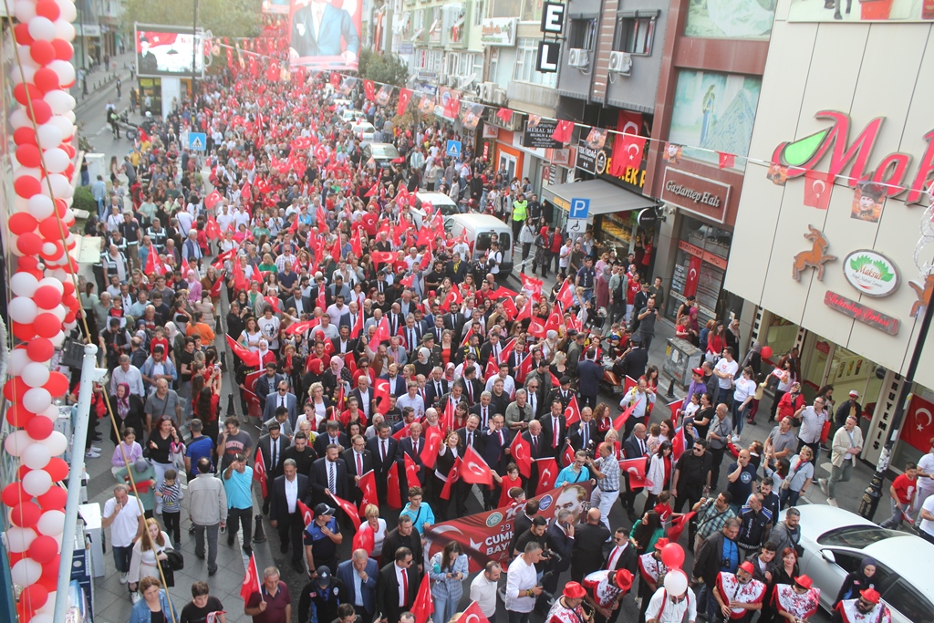 Tekirdağ Cumhuriyetin 100. Kuruluş Yıldönümüne sahip çıktı. Köprübaşından başlayan kortejdeki insan selini Süleymanpaşa sokakları almadı. Tarihindeki izdiham yaşanır gibi ucu bucağı görünmeyen en büyük kortejlerden birisini yaşayan Süleymanpaşa’daki kortej festival kortejlerini bile geride bıraktı.