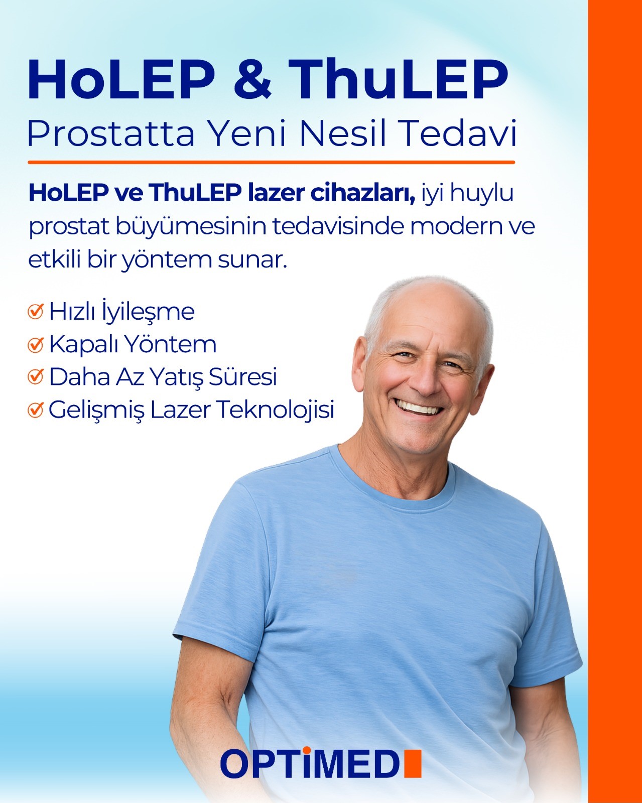 Optimed Sağlık Grubu, hasta odaklı ve ileri teknolojiye dayalı sağlık hizmetleri anlayışıyla yatırımlarına devam ediyor. Bu kapsamda Optimed Çerkezköy Hastanesi, iyi huylu prostat büyümesi (BPH) tedavisinde dünyanın en güncel ve etkili yöntemleri arasında yer alan HoLEP (Holmium Lazer Prostat Enükleasyonu) ve ThuLEP (Thulium Fiber Lazer Prostat Enükleasyonu) teknolojilerini başarıyla uygulamaya başladı.