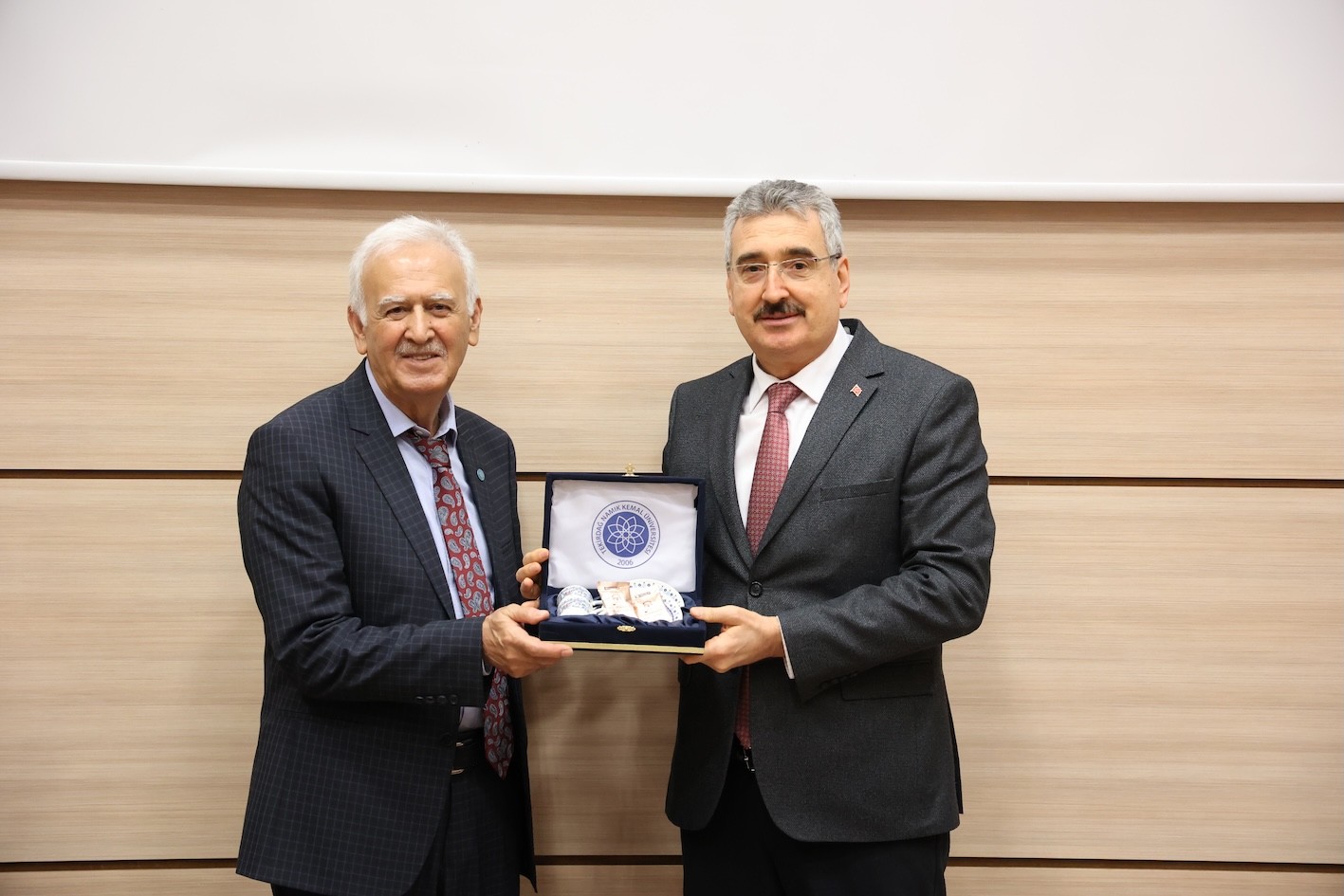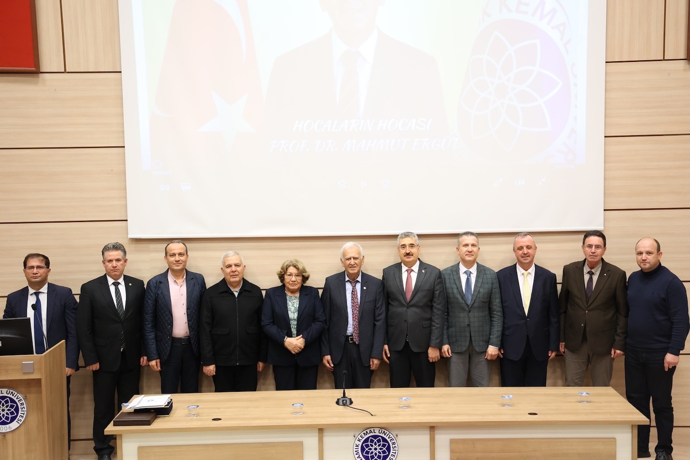 Törende konuşan Rektör Prof. Dr. Mümin Şahin, Prof. Dr. Mahmut Ergüt’ün üniversiteye ve bilim dünyasına sunduğu katkıların önemine dikkat çekti. Rektör Şahin, “Üniversitemizin gelişim sürecinde ve binlerce öğrencimizin yetişmesinde çok büyük emekleri olan kıymetli hocamız Prof. Dr. Mahmut Ergüt’e şükranlarımızı sunuyoruz. Kendisi sadece akademik birikimiyle değil, beyefendi kişiliğiyle de genç akademisyenlerimize örnek olmuştur. Hocamıza üniversitemize sunduğu değerli hizmetler için teşekkür ediyor; emeklilik hayatının sağlık, huzur ve mutlulukla geçmesini temenni ediyorum” ifadelerini kullandı.