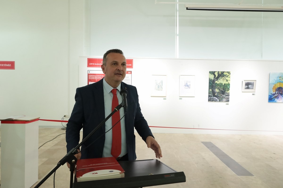 Rektör Prof. Dr. Mümin ŞAHİN, konuşmasında, “Cumhuriyetimizin 102. yıl dönümünü sanatın evrensel diliyle kutlarken, gençlerimizin sanata ve kültüre duyarlılığının geleceğimiz için hayati olduğunu bir kez daha görüyoruz. Akademisyenlerimizin son derece nitelikli çalışmalarını bugün birlikte gezdik ve gurur duyduk. Bu vesileyle Cumhuriyetimizin kurucusu Gazi Mustafa Kemal Atatürk başta olmak üzere vatanımız için canlarını feda eden tüm kahramanlarımızı rahmet, minnet ve şükranla yâd ediyorum. Emeği geçen tüm hocalarımıza, öğrencilerimize ve çalışma arkadaşlarımıza teşekkür ediyorum.” ifadelerine yer verdi.