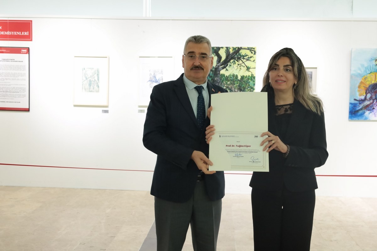 Program, Saygı Duruşu’nda bulunulması ve İstiklâl Marşı’nın okunmasıyla başladı. Ardından Rektör Prof. Dr. Mümin ŞAHİN, Dekan Prof. Dr. Murat ÖZYAVUZ ve Prof. Dalila ÖZBAY açılış konuşmalarını yaptı. Konuşmaların ardından sergide eserleri bulunan akademisyenlere katılım belgeleri takdim edildi.