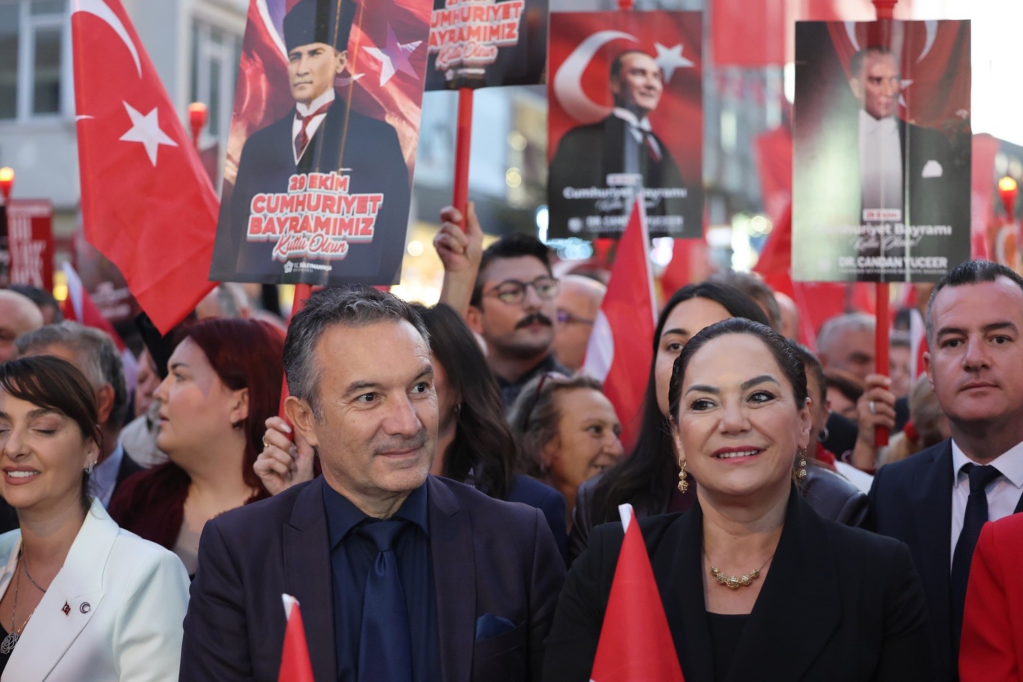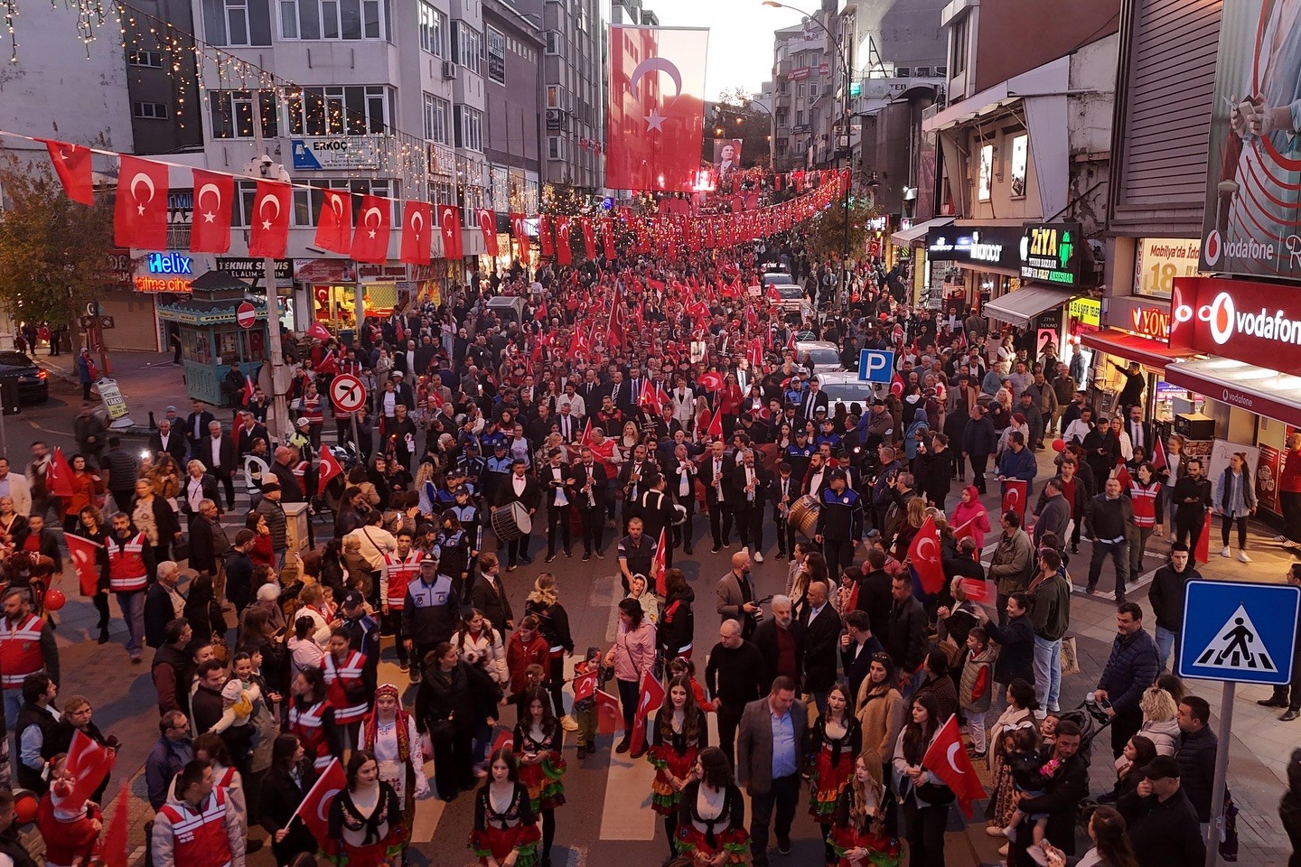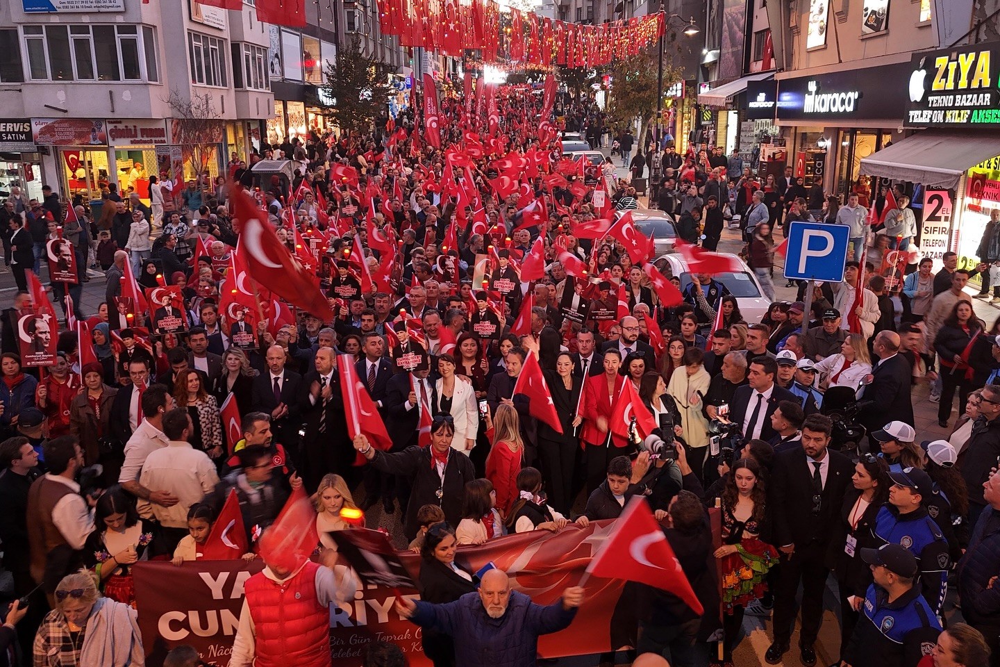 Büyükşehir Belediye Başkanı Dr. Candan Yüceer’in de vatandaşlarla birlikte yürüdüğü fener alayında, katılımcılar ellerindeki Türk bayrakları, Atatürk posterleri ve meşalelerle Tekirdağ sokaklarını adeta kırmızı beyaza bürüdü.