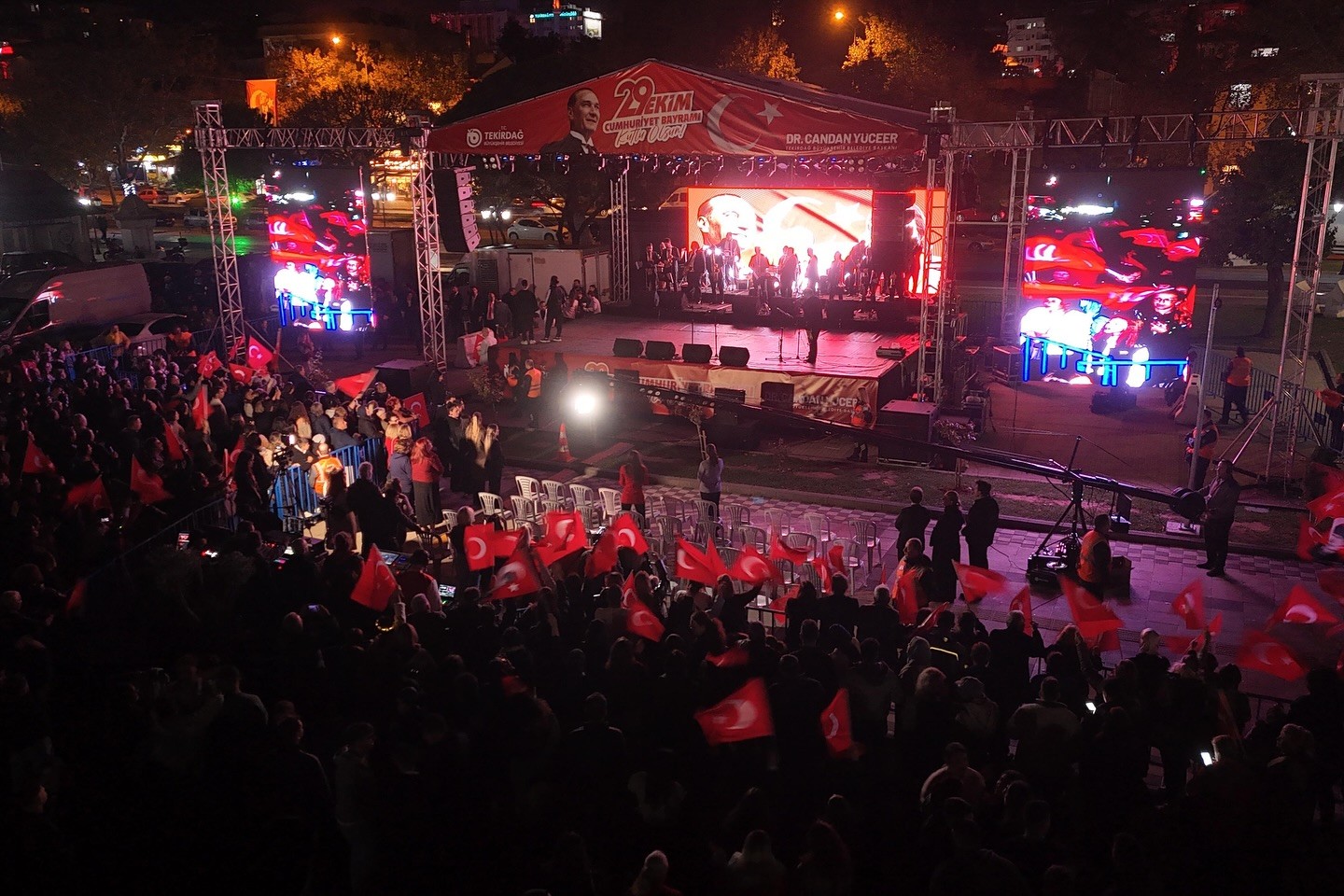 Tekirdağ Büyükşehir Belediyesi’nin 29 Ekim Cumhuriyet Bayramı dolayısıyla düzenlediği etkinlikler, bayram coşkusunu kentte doruğa çıkardı. Binlerce vatandaşın katılımıyla gerçekleşen fener alayı, Tekirdağ sokaklarını kırmızı beyaza boyarken gece, Sahil Dolgu Alanı’nda Kent Orkestrası’nın verdiği unutulmaz konserle taçlandı.