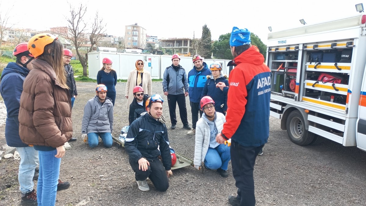 Söz konusu eğitimler Üniversitemizde başladı. Oluşturulan ekipler, Tekirdağ AFAD İl Müdürlüğü’nden Arama Kurtarma Teknisyeni Samet GÜNAY tarafından Rektörlük Konferans Salonunda verilen teorik kısım sonrası ayrıca AFAD İl Müdürlüğü’nün yanındaki temsili enkaz alanında uygulamalı eğitimlerden geçiyor. Ekipler burada kurtarma ekipmanlarını kullanmayı öğreniyor, gerekeli güvenlik önlemlerini alarak enkazdan ses dinliyor, kırıcı kullanıyor, enkaz altından sedyeyle yaralı çıkarmayı öğreniyor.
