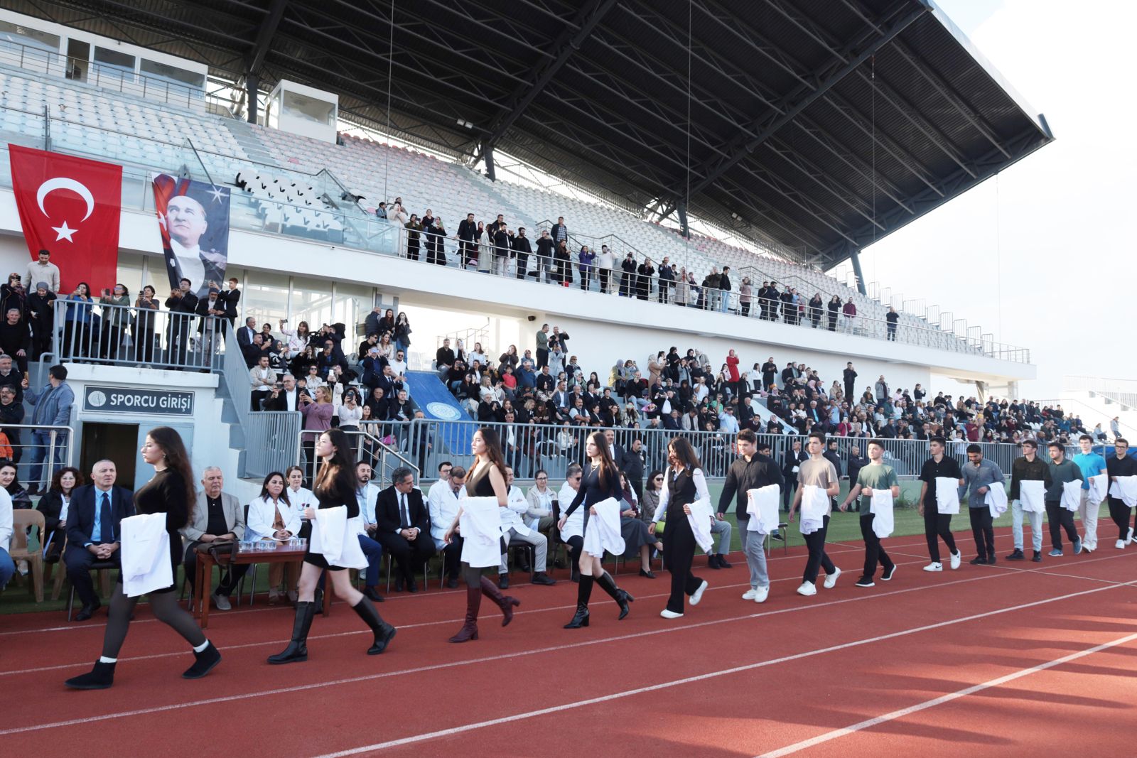 Üniversite stadyumunda gerçekleştirilen tören, Saygı Duruşu’nda bulunulması ve İstiklal Marşı’nın okunmasıyla başladı.