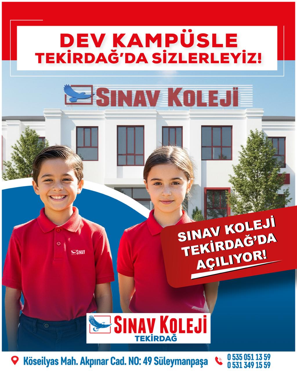 Tekirdağ Sınav Koleji, 2026–2027 eğitim-öğretim yılında tüm kademeleriyle kapılarını açarak bölgenin eğitim vizyonuna katkı sunmayı, şehrin eğitim standartlarını yükseltmeyi hedefliyor.