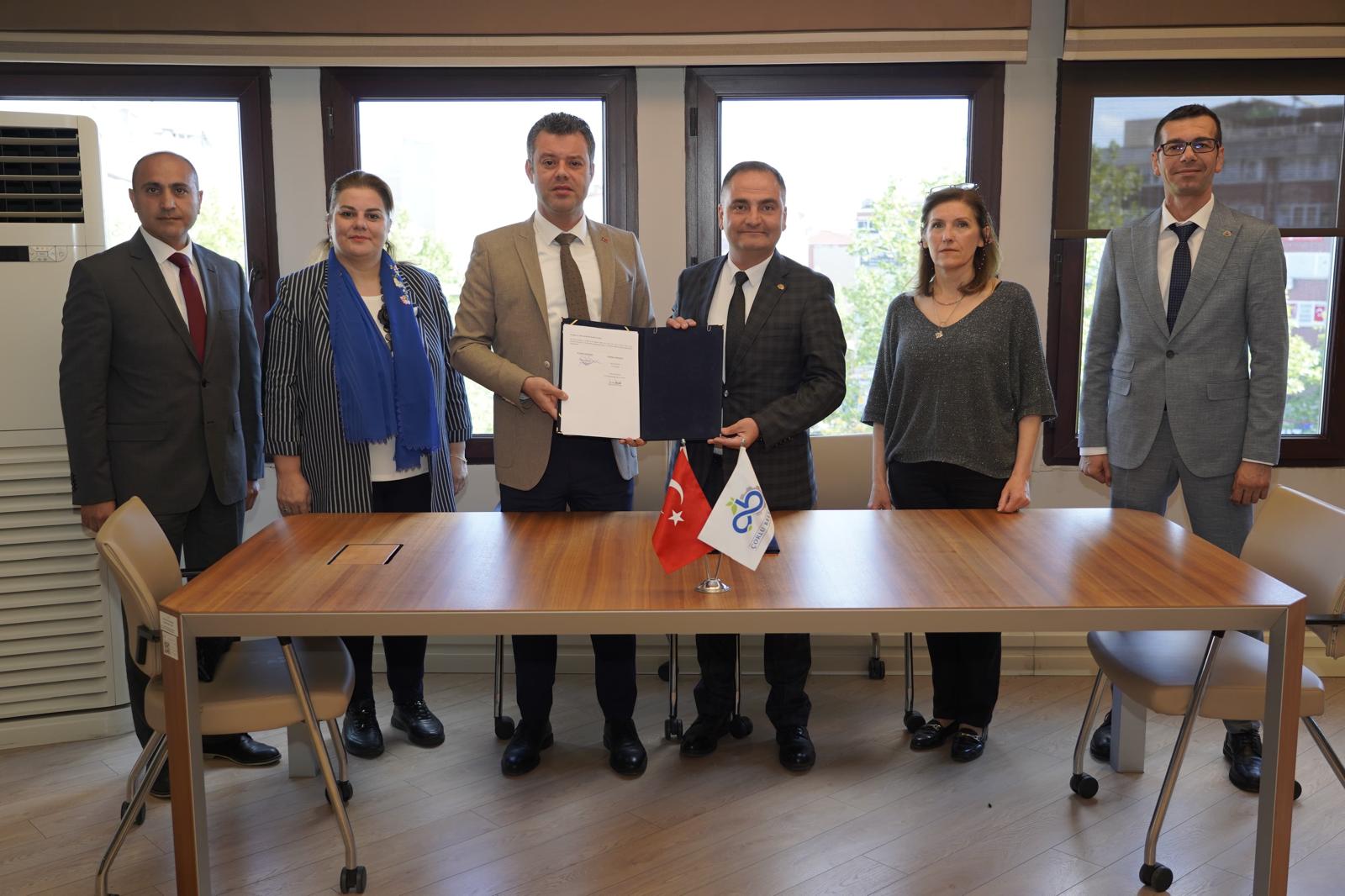 Çorlu Belediyesi ve Tüm Yerel-Sen (Tüm Yerel Yönetim Çalışanları Sendikası) Tekirdağ Şubesi arasında iki yılı kapsayacak “Sosyal Denge Sözleşmesi” Çorlu Belediye Başkanı Ahmet Sarıkurt ve Tüm Yerel-Sen Tekirdağ Şube Başkanı Ali Şahin Gülen arasında imzalandı.
