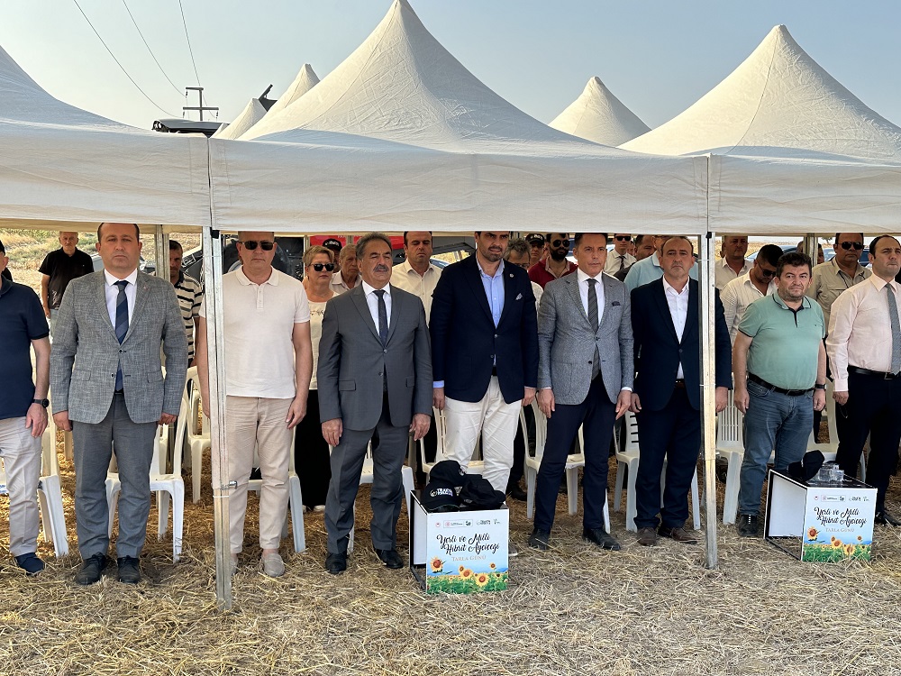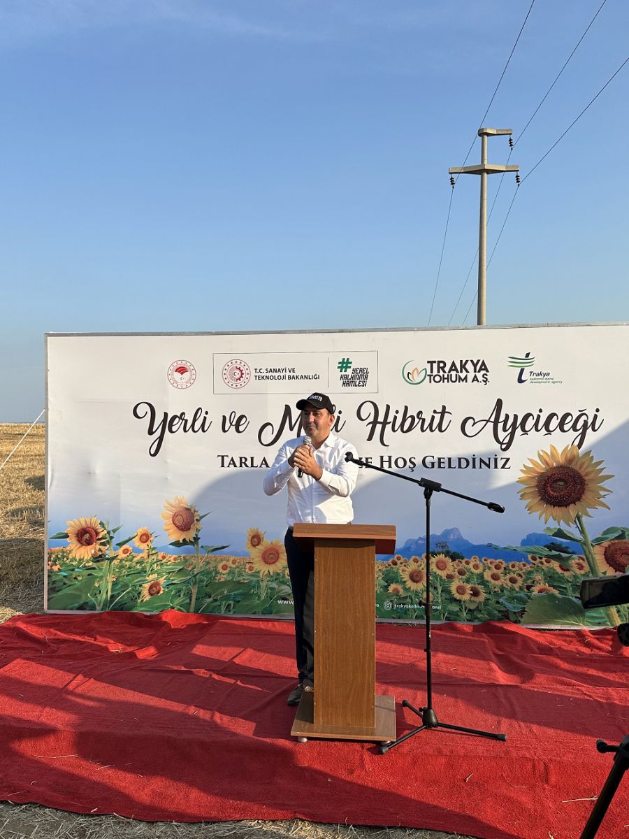 “Bugün burada bizim için bir rüyanın gerçeğe dönüşmesine şahitlik ediyoruz. 2019 yılında bizim koordinasyonumuzla Tekirdağ Namık Kemal Üniversitesi Teknoparkı, Trakya bölgemizdeki 32 tohumculuk şirketi ve 10 ticaret borsasının ortaklığında kurulan Trakya Tohum A.Ş. tarafından üretilen %100 yerli ve milli hibrit ayçiçeği tohumumuzu hasat etmek üzere buradayız. İlk kez 2021 yılında 3.5 ton üretilen tohumumuz, 2022 yılında 9 ton üretilmiş, bu miktarın yaklaşık 2 tonu 2023 sezonu için Edirne’de 212 çiftçimize ulaştırılmıştır. Bugüne kadar hasadı yapılan ürünlerde gerek hastalık gerekse kuraklık ve sıcaklığa toleransların yüksek olduğu ve genel anlamda çiftçilerimizin tohumun performansından memnun kaldığı gözlemlenmiştir. 2023 yılında 60 ton üretilen tohumun 3 tonu 2024 yılında 295 çiftçimize ulaştırılmıştır. 2024 yılında da kuraklığa ve değişen iklim koşullarına rağmen iyi bir performans gösterdiğini gözlemlemekteyiz.
