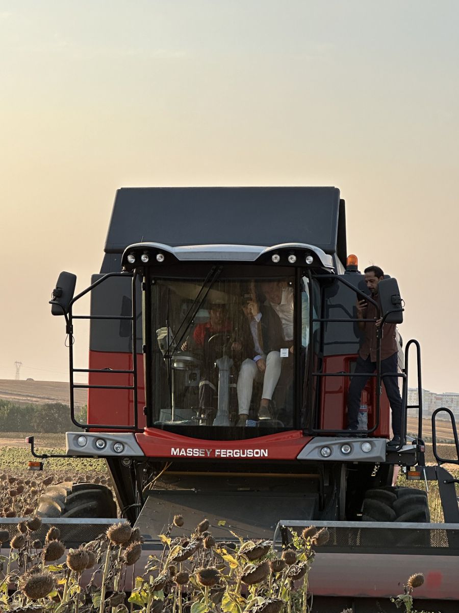 Tarla günü etkinliği, biçerdöverle ayçiçeği hasadı ve toplu hatıra fotoğrafı çekimiyle sona erdi.